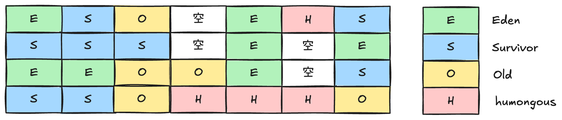 如果 YGC 恰好回收了一些包含“旧超大对象”的 Region,那么这些 Region 被腾空后,可能会偶然形成连续的空闲块。